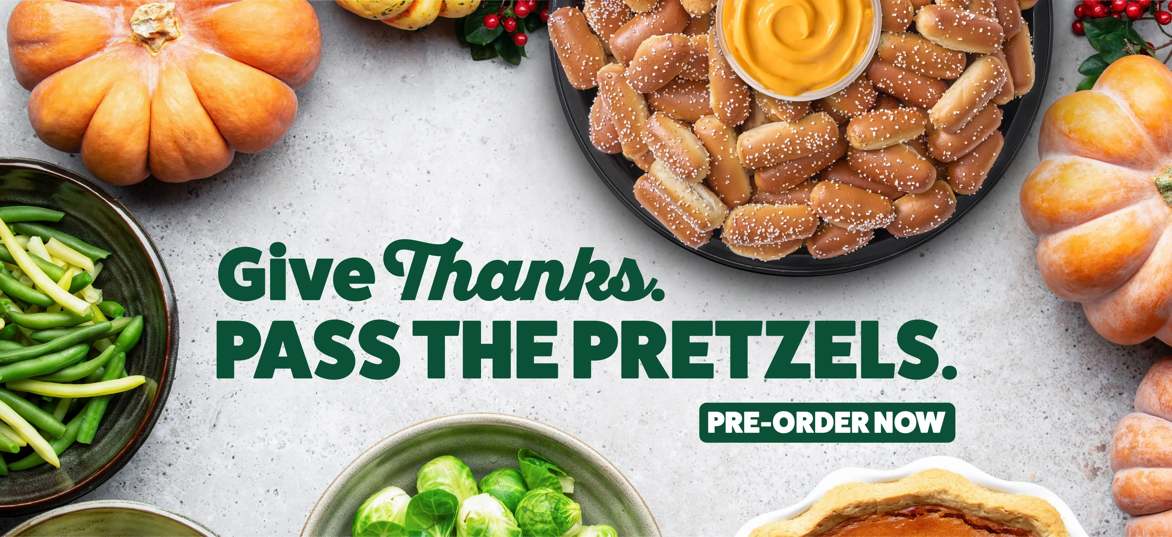 Join Pretzel Rewards today and treat yourself to 5 free pretzels, on us! *Limit 1 per member. New enrollments only. Additional terms and exclusions may apply.